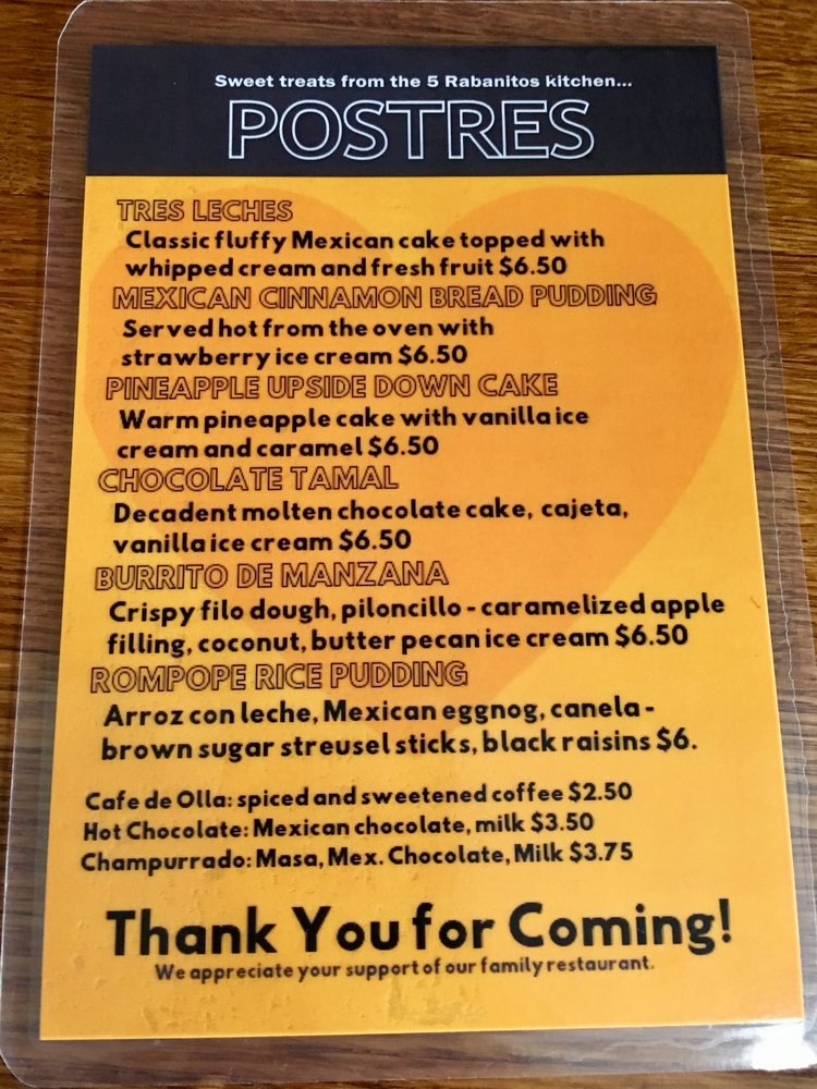 5 Rabanitos Restaurante and Taqueria Menu